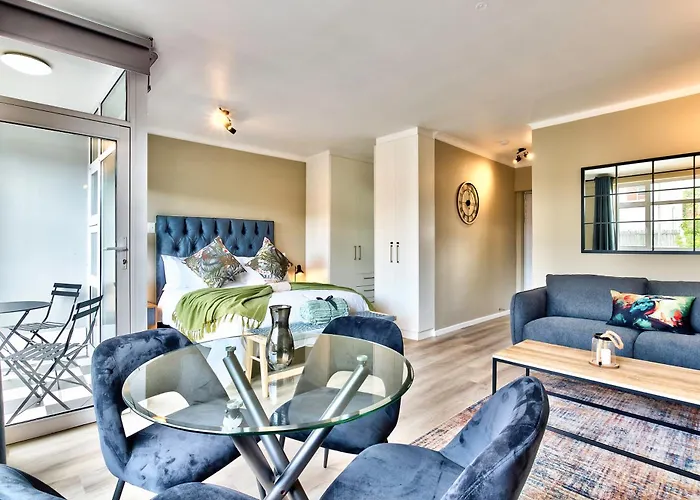 Apartamento Charming Studio In Green Point Ciudad del Cabo, que incluye una terraza, se encuentra a unos 500 metros del Green Point Stadium. La Cabeza de León está a 3 km de este apartamento, mientras que la Labia Cinema se sitúa a unos 25 minutos a pie.